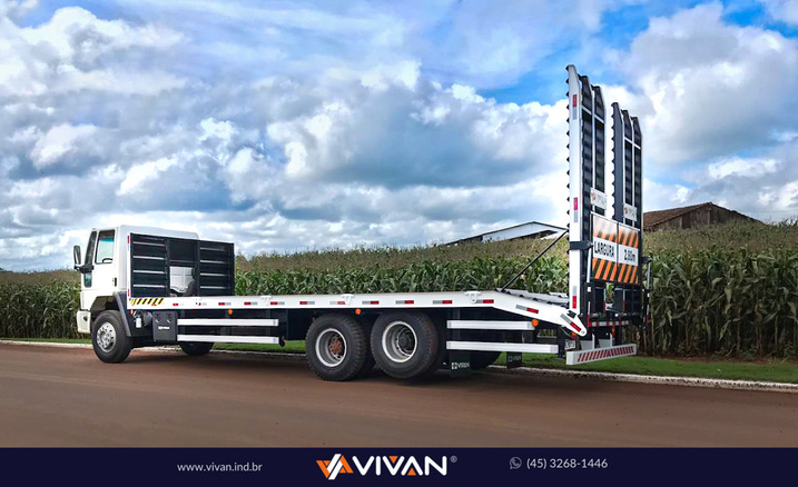 O equipamento conta com rampas antiderrapantes, placa sinalizadora, protetores laterais e para-choque homologado, cumprindo rigorosamente as normas de segurança e a legislação vigente. Trata-se de uma solução eficiente e resistente, desenvolvida para tornar o transporte pesado mais seguro e confiável em todas as operações.